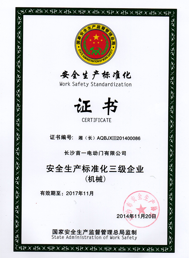 長沙首一電動門有限公司(營業執照代碼:9143010357027453X4)