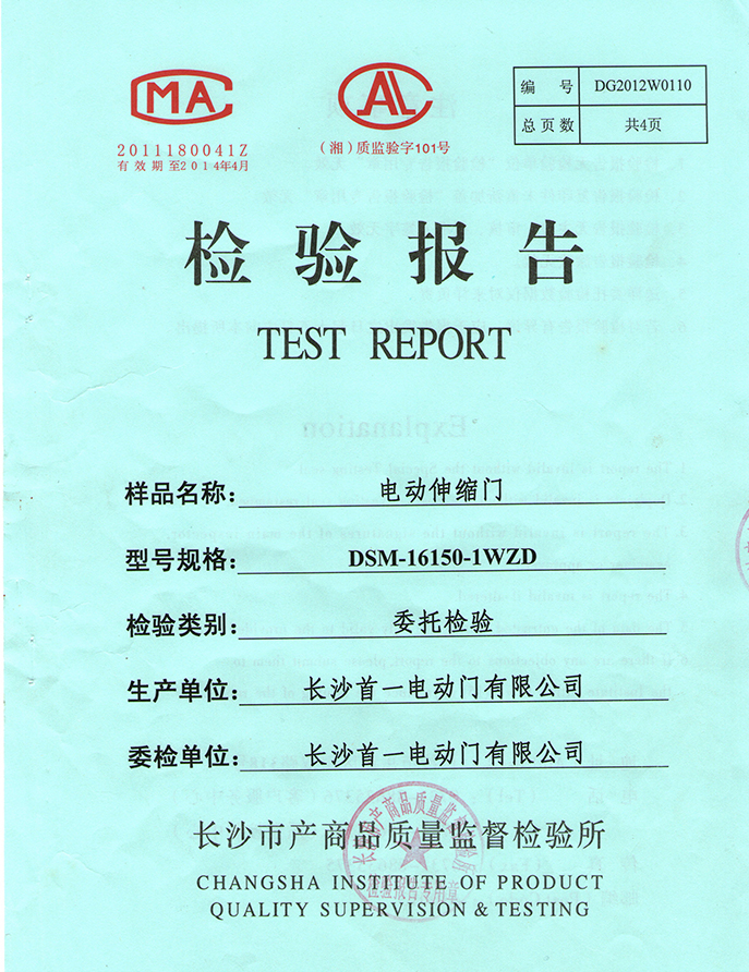 電動(dòng)伸縮門(mén)檢驗(yàn)報(bào)告