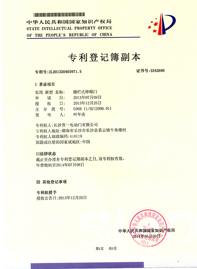 長沙首一電動門有限公司(營業執照代碼:9143010357027453X4)