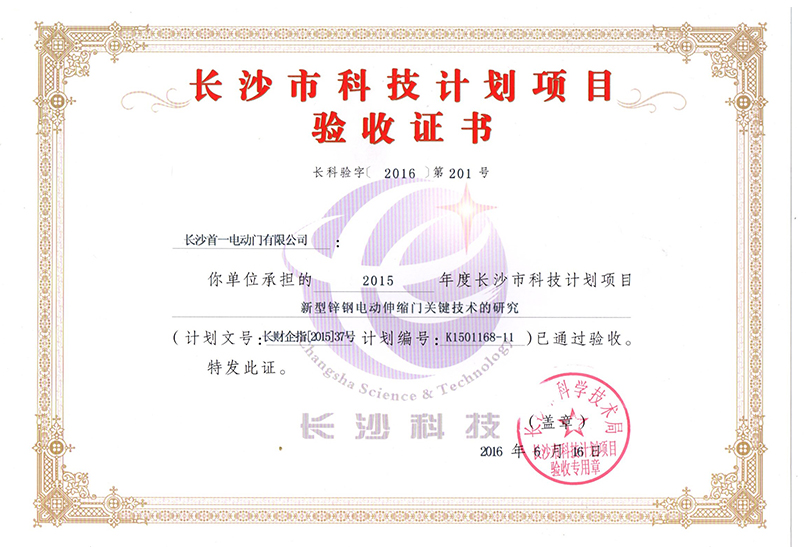 長沙市科技計劃項目驗收證書